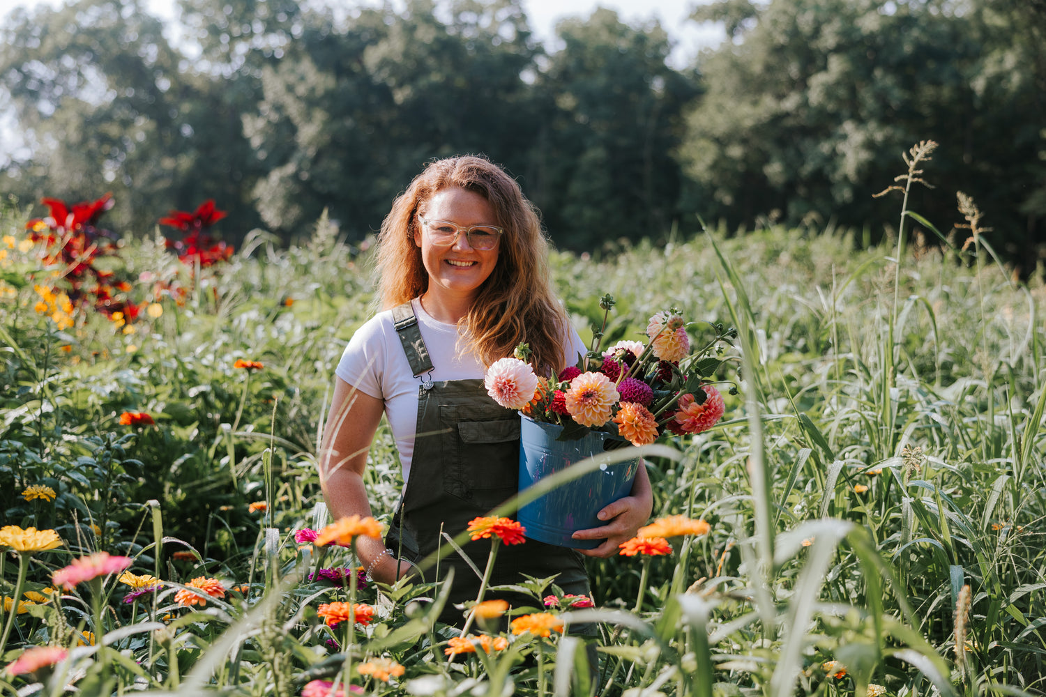 Glass House Flower Farm came to be in 2024, but it was several years in the making. My floral obsession started in 2018 when I planted my first roses and only got more out of hand during the COVID-19 pandemic. I went a little stir crazy social distancing, and when I ran out of space in my own tiny yard, I started landscaping for others in the neighborhood. In 2021, my now husband and I bought our own little hobby farm in Fowlerville, Michigan. It started with a few dahlias on our south facing hill as a test batch for our wedding, and four growing seasons later, I'm growing well over 100 varieties - some cut flower staples, some hard-to-find and new releases. I keep finding more to add and the patch continues to grow, so here we are.